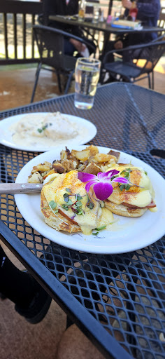 In addition to wonderful breakfast and lunch choices (they are only open until 2PM), we found that the servers were very friendly, and willing to share places to see and visit (conversation was triggered by a page on the menu highlighting attractions in the area). We also spoke with a fellow patron, who was also willing to share best places to shop. (We were in the area looking for housing and were hungry, so stopped for bite to eat to discuss).