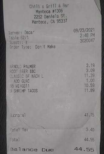 Read moreI recently visited Chili's in Manteca and was absolutely blown away by the incredible changes they've made! From the moment I walked in, it was clear that Chili's is dedicated to enhancing the dining experience.