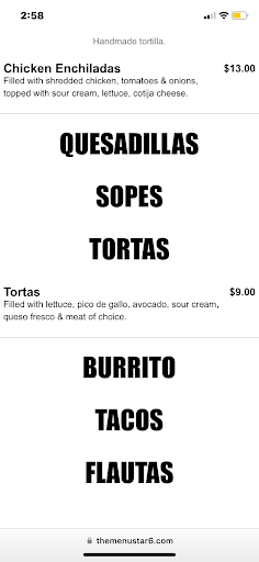 Cashier acted like she didnât want to be there and annoyed . I ordered a gotta and a cheese Mulita . Cost $17 . I know the tortillas are hand made so didnât think too much about the price until I got the food . 1 driest tortas Iâve had in my life the picture on the menu the torts has beans which it does not and the description on menu says it comes with pico and crema which it did not . Came with meat , lettuce and jalapeños. Thatâs it. If you look close enough you can find specs of crema đ The Mulita was the smallest thing Iâve seen in my life ! Each tortilla is slightly bigger then a street taco but def way smaller then a regular corn tortilla .The menu says the torta is 9$ that means this little thing cost $8 . Crazy . Doesnât even sound right . Now I feel like I got ripped off. Never again . Also the wait was forever and there wasnât than many people there & not much love put into the food so yeah no. . Also 2 homeless tents right next to the truck .