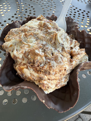 Now, the product. I was sick the remainder of the day. I actually sat in my car and consumed this, and couldn’t even get halfway through without discarding it. It was throw out the window on the freeway worthy. I got the most BASIC! chocolate & vanilla plain ice cream in a waffle bowl with gram cracker pieces. I can’t quite put my finger on the taste other than the that of spoiled milk. I tried to ignore it. I just couldn’t take it anymore. I didn’t even bother to go inside and complain. I just cried on the way home because I NEEDED that ice cream as I was having a not so great day. I drove out of my way to find this. I should’ve just went to the one in Moval/Riverside County. It is 12:47am as I’m typing this and I still feel nauseated.