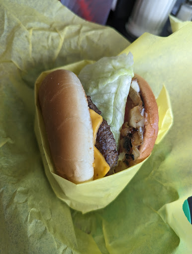 A humble cheeseburger, one that is perfectly proportioned. You start with a proper thick patty that's been expertly packed and shaped. Fresh, crispy lettuce, and an thin slice of onion that doesn't overpower the senses when you unwrap your meal. Your palette stays dry so you can taste layers through each bite, and individual sauces add to the experience like a crescendo in a symphony. There's no excess of any ingredient, condiments stay in place, marching in single file to the beat of your chewing. To your delight there is nothing in the wrapper, or on your plate, no wasted cheese to lament over, and nothing on your hands (or your shirt). By the end, your final bite will be moist, layered with all the ingredients, rich tomato juices. Your auspicious reviewer was shocked and awed that the construction of this burger stayed true throughout it's consumption.