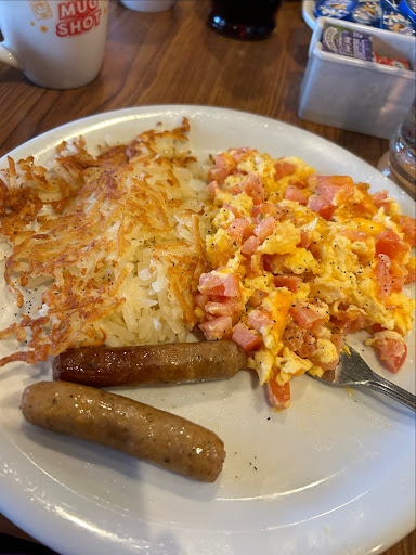 Read moreInitial walk-in was friendly. We were greeted by the server, she seated us and took our drink orders right away. The only thing I could say that was unpleasant was the smell of the carpet. If you can get past that, you’ll have a pleasant experience. I chose to overlook it at the time. We ordered coffee, orange juice and water with lemon for beverages. The atmosphere was nice and quiet for the early morning. There were a couple of other locals there for breakfast and it genuinely seemed like a nice place to go for a good hot meal. I’ll start with the beverages. The coffee was hot, fresh, and robust. I didn’t try the juice. As for the food, everything came out of the kitchen appetizing. I ordered the very berry pancakes with scrambled eggs and sausage links. The pancakes were blueberry pancakes with fresh strawberries and banana on top, I added diced tomatoes and sprinkle cheese to the eggs, with sausage links. Everything tasted fresh, hot, and delicious. If I lived in Fallbrook this would be a regular place I would dine for breakfast. My partner enjoyed his lumber jack slam, he just didn’t have room for the pancakes. The service: there was one server early Saturday morning, she did fabulous. Although she had her hands full with all the other patrons as well, she managed to check on all of us, and keep our coffee cups full. What a pro!!Bottom line: I’m back home in Texas, longing to go have breakfast at the Denny’s in Fallbrook. Management, kudos to the staff and the excellent quality of fare! Oh and btw, I know the staff at this establishment are hard workers. The Hispanic male that does the bussing was also busy cleaning the...