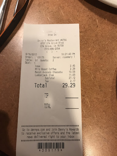 Read moreAbsolutely terrible. We waited a long time to get seated (i found out later it was because the hostess would constantly go to the back to take "breaks" and chat with some guy) when the hostess finally showed up she asked how many, there was 2 of us but i told her we may have more later, to which she replied in a rude manner "we can only seat you if your whole party is here" I understand if it's policy, but I don't understand the need to be rude?! I said ok, just go ahead and get us seated, we'll take a table for 2. The waitress "Rosemary" seemed to be in a hurry. She quickly asked for our drinks and our food. (I don't expect too much from a Dennys to begin with, but when someone makes you feel rushed, well I don't like it. Im a paying customer ya know ? My burger was ok. But everything else was undercooked, I couldn't tell my waitress because she left and went home after we got our food. We didn't get service or refills. Like i said, im already expecting an average to ok experience from a Dennys but this was just too much. These people should get fired and their positions should go to someone who actually needs a job. These people obviously don't care about theirs. I hope a manager sees this. I will attach a picture with my receipt, I didn't get the name of...
