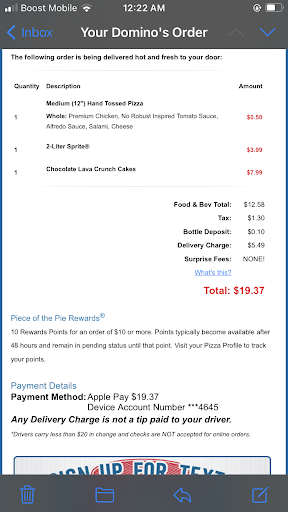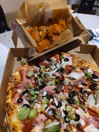 As far as the food goes, you're getting what you pay for. It tastes like Domino's. I don't blame them for following company standard with stuff like the toppings, which come in pretty small portions and definitely aren't fresh. The cinnamon twists are sooo tasty though! If you're looking for quality, go to Pie Whole or Me n Eds. If you want to avoid talking to someone and get your pizza ASAP, Domino's is pretty reliable.