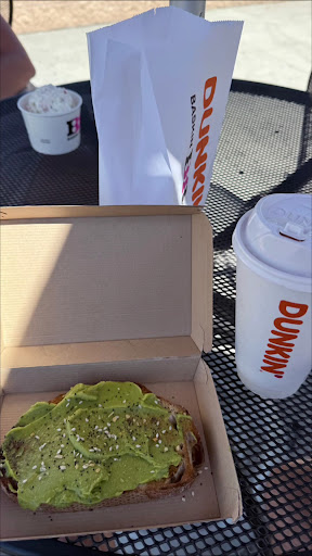 I ordered a signature caramel latte, an avocado toast, and a Bavarian cream donut. The latte came out rich and sweet, just enough caramel to keep it smooth without tipping into sugar overload. The avocado toast was fresh and crisp, stacked with creamy avocado that made it feel more like breakfast than just a snack. And the donut? Classic Dunkin’ — soft, filled right, exactly the kind of comfort bite you want with coffee.