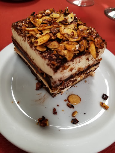 Finally, my friend had an espresso, of course, and a few bites of my House Cake. When I go back to D.C. I will think about this desert. It's the mischievous cousin to tiramisu, with biscotti dipped in espresso and layered with cocoa, chocolate and thick white cream (probably mascarpone), with sliced almonds sprinkledon top - OMG - this alone would be worth the trip.