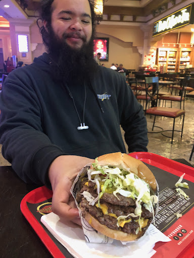 Read moreI came here for the buffet at the casino the line was way to long! I looked around for something else and the only restaurant that interested me was fat burger I've seen it around before but I have never tried it. For most restaurants I am always reluctant to spend money on burgers because I'm usually disappointed. I looked at the menu and then saw the xxxl burger 1.5 lbs! It seemed worth the cash my logic is if I was disappointed with the burger at least I'd be full. The guy at the register was patient with me. The first thing I noticed is they were cooking fresh not frozen. When my order was ready I was amazed how big it was it brought a smile to my face and finally the taste. It was the best burger I ever had. The meat it was cooked to perfection you can tell just by looking at it and when you take a bite firstly you notice how juicy it is then you taste the seasonings, the vegetables and then as soon as it starts to taste too beffy. BAM! cheese, always remember to get the cheese. I finished and thanked the staff for the...