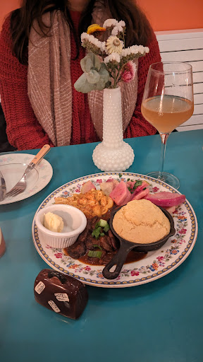Sadly my review of this place is not what I expected to write. I’ve read about this restaurant and had high hopes and was interested in loving it actually. The ambience was nice and interiors in line with the menu. As vegans we optimistically read reviews and articles about this place prior to our visit. I read the background story in various articles online. As a Bay Area native I’ve visited Mendocino frequently my entire life. Our family knows the town very well. I’ve watched restaurants come and the town evolve so it’s always exciting to try new places especially plant based options. We arrived after an 8 + hour drive from LA with 2 hungry teenagers and 3 exhausted adults. We were all happy to be back up in our childhood getaway. My brother called ahead of time and said that he was greeted by a friendly person on the phone. Upon arriving however we were not greeted and stood at the door in a very small dining space until one of the owners (Erica) finally told us it will be a while and needed to clean our table. She turned her back to us and carried on with orders and left us standing. Her energy was unpleasant and annoyed. We stood as long as we could and finally just sat down at the table. She then arrived 8-10 mins later and scolded us for sitting down and mentioned “that’s why” she wanted to clean the table first. It was curt and off putting coming from someone who is positioned in the restaurants PR as someone from Tennessee. Not at all the southern manners or hospitality I ever expected having visited the south frequently and surprising being how southern food in their cuisine. Erica was annoyed and irritated and was going to make sure we all knew it, even 2 teenaged girls in an outwardly passive aggressive manner. We were told that the orange wine we selected wasn’t available after ordering 10+ minutes later and given and alternative to try. This was presented by the other owner (Haley) who apparently is from nearby Fort Bragg. She was pleasant and hospitable and service oriented. We appreciated her suggestion and hospitality. I frequented the places that these 2 owners met in New York City as per their bios, having lived in New York myself for 18 years. I know the establishments well. I am a partner to a hospitality and service firm overseas in Asia Pacific. We train and staff hotels and restaurants so I look at operations and I look at service immediately. Fog Eater lacked both. We should have been greeted with a smile and told “hey the table isn’t clean but have a seat and I’ll be over shortly to get it cleaned up for you”. The entrance door should never be blocked with people traffic. This is an operational and hospitality faux pas. There were 4 additional diners after us who were forced to stand there as well while everyone stared at them and they ended up just leaving. Business lost. When we asked Erica for menu suggestions she became annoyed again and said she would need to come back and left and when she returned we asked again for menu suggestions and she just couldn’t be more annoyed. We ate the food which was good and left. I would never go back. I do hope that was an off night for them and wish them the best. Suggestion: work on your service. Watch the door. Don’t make people stand there. Tourists are the bread and butter of Mendocino. But I own a home there and am not a tourist. I suggest places and give my honest reviews as...