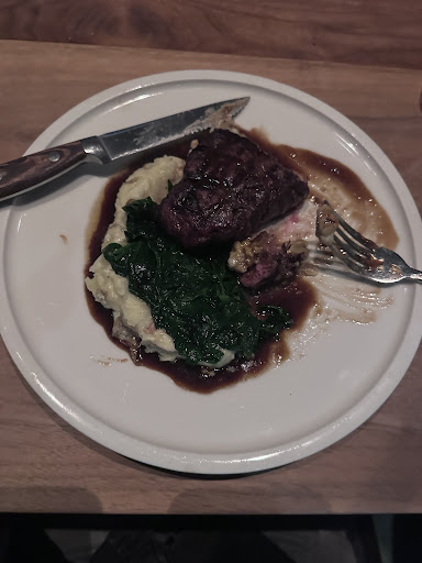Read moreMy husband and I dined at Guest House last night for his birthday and were both very pleased with the meal and service! We had a fun time chatting with the table next to us and playing the Marvel Alphabet game, ha! I appreciated that our server made sure the chef cooked my salmon fully to assist with my pregnancy (no raw fish!) and loved the Grapefruit Spritzer!! The Smoked Trout appetizer was small but a good portion for 2 to share, although we could have easily eaten at least a dozen. I loved the warm and crispy texture/taste of the potato base and the avocado mousse with basil oil - really balanced well with the smoked flakes trout. My salmon dish was complex and exciting, every bite was adventure - wood fired artichokes with Dijon mustard WOW, just wow!! I also thought my husband's steak was very nice but didn't eat much due to him liking it a little more on the rare side. We both thought the addition of A1 sauce on the side was odd as the red wine demi sauce was a perfect pairing. The random grilled lemon half also threw us off a bit and weren't sure if it was meant to be there at all as the Arugula salad was seasoned well and not lacking acid. We shared the Mudpie for dessert, and our server brought it out with a candle, which was very sweet. My husband was disappointed that this Mudpie did not have ice cream (I have never had a mudpie with ice creams this a thing??) and thought the dessert was insanely good and not overly sweet. What a perfect balance of chocolate to meringue. Overall, we thoroughly enjoyed our meal and will...