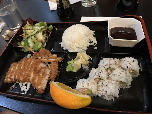 California roll: good decent rolls but the portion was rather small. Tonkatsu & california roll bento box: the pork cutlet tasted good and crunchy but the cut was very thin. For dinner price, the portion was small and my hubby was still hungry after finishing his bento. Saba shioyaki & tempura bento box: the fish was good but they only gave 3 small pieces. The salad dressing was good though and the veggie tasted fresh. The tempura pieces were crunchy and well cooked. But again, the portion was small and I was still hungry after the meal.