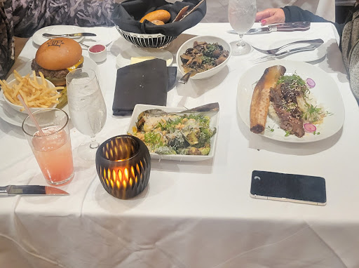 Read moreIt was our 1st time eating here, though we visited Thunder Valley Casino numerous times. Our reservation was at 6:30 and we arrived at that time. We were seated promptly in which we appreciated. We did take about 15 minutes to decide on drinks and food as we wanted to go over our choices and decide what we wanted. Our server was pleasant and attentive. The atmosphere was.....dreary. The lighting was low, and there were very few people in the establishment. We were seated at a table that was small, and one chair was within the aisle, and the other seat was booth style. There were other options that were better suited for 2 people, but oh well. We ordered around 6:45, for my wife, short ribs, for myself, Wagyu burger (well done), meatballs, a side of Brussel sprouts, and a side of mushrooms. Our order was now placed, so we waited...7pm, still waiting...7:15pm, still waiting...7:25pm, still waiting. However, our waitress at this time informes us our food will be out shortly, they're plating it now. 7:28pm our food was served. We ate the meatballs, which were very tasty and well prepared. My wife said the short ribs were delicious. As I prepared to eat my burger, ordered well done, my wife commented on the Brussel sprouts, possibly not being done. I cut my burger in half as it was quited large, and then noticed the pink meat within. I informed the server, and she returned it to be re-cooked. I tasted the Brussel sprouts, and indeed they were still hard, only charred on the outside. I tasted the mushrooms, and the sauce used (which tasted like sesame) was so overpowering, we couldn't eat them. After about 10 minutes the server returned with my burger, at which time I informed her about the Brussel sprouts, she removed them from the table. I recut my burger and unfortunately, the meat on the inside was still pink, while the outside was just more charred. At this point, we were done. We asked for a box for the food, and explained that after the recook, the burger was still medium well. The manager, Shawn, did come and speak with us and issue an apology, as well as offer other items (which we declined). I explained that at this point, I would take the burger home and cook it myself. There is no hard feelings, though we heard so many high remarks for High Steaks, and it's always packed, it just was an ominous experience. I have pictured our full meal, my burger as it arrived, and my burger cut and after they had recooked it (still some pink). We are unsure if we will eat there again, but hopefully it was just some fluke,...
