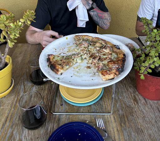 Read moreMixed Bag đ This place used to be a bbq restaurant. Complete with the large bbqs and smokers outside, it certainly was delicious. Fast forward, the owner turned it into a pizza restaurant with some other choices like a few bbq items and burgers. We tried the sausage pizza and Rancho Gordo beans, salad, and deserts. The pizza consistency was a little on the wet side. It had purple baby potatoes along with the fenel sausage and cheese. The Rancho Beans I'm afraid did not go so well for me. They were served hot, and they had a soggy consistency. The salad was perfect. It seemed that the pizza and the beans were low on salt. The deserts were also a mixed bag. The cookie was the same recipe as when the place was a bbq restaurant, it was delicious. The pie to me had a lot of cinnamon, that didn't bother me, but I was surprised to find the whipped cream was unsweetened.