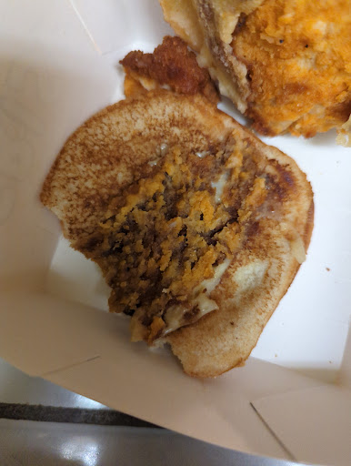 The person at the counter was helpful. I had a spicy chicken sandwich. It was good but it came apart and I got mayonnaise on my hands. I couldn't clean them very well with a napkin so I started getting up to go to the bathroom. Well I had things like my phone on the table. I couldn't pick them up without getting mayonnaise on them. I decided to leave them. I got mayonnaise on the doorknob and on the faucet and the soap dispenser. I got it cleaned up though. I went back to table. My things were okay I guess. I used the sandwich paper to eat the rest of the meal. I guess there was some mayonnaise on the wrapper. It made my fingers a little slippery I guess. And well my cup just naturally squirted out of my hands and I guess it got all over and I didn't have my guard up and I guess I said a dirty word that sounds like "sugar". Well I guess this stirred up the other patrons. There was this man with a couple kids and an old lady and he asked"do you give private lessons?" I said no before I realized he was being sarcastic. Then I was fried boy. I refilled my drink and finished my meal. I was happy with the meal but I would appreciate a sandwich structure redesign. I will...