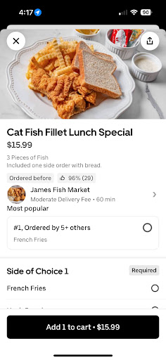 Read moreFirst time here and James Fish Market did not disappoint. Food was excellent, but they can definitely ease up on the salt on the fries, it was way too heavy. I ordered the catfish well done and one of my sides was the macaroni and cheese. I can say that the mac & cheese was delicious. I really wanted to try their greens, but they sold out quickly. I would definitely be back over...