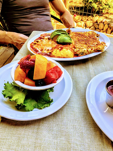 Read moreMany 5 star ratings! Have you ever been to a true 5 star restaurant? Easy to please and I was hoping to actually find a review with the substance to back the rating up! You are all nice folks! Ok. I've been here once, so as consistency is important, I cannot speak to that. Very much enjoyed the (log cabin) aesthetics. Indoor and outdoor seating as noted in some reviews and pictures. Get there early on the weekends, before 9am or be willing to wait partners. Pies and baked goods are near the front entrance, inside, a marketing ploy? Some seats for waiting otherwise stand. Was seated outside on a warm summer morning, not too hot before 10am. Had the Spanish omelette with avacado, and ordered crispy hash browns, side of fruit, and a piece of cherry pie I eyed upfront. The omelette was served warm/appropriate as well as the hash browns. The fruit presentation was very good and was fresh and tasty on the palate. The omelette was satisfying and very good overall. The hash browns were crispy on the outside, however, mine as well as the other order were both mushy on the majority of the offering. The pie crust on the cherry pie was the best aspect, flaky, buttery with a slight chewy texture. The filling unfortunately was a pre made filling I wager, so overall a little disappointing. A note about the coffee. If you are a fan of Farmer Brothers, you'll be happy no doubt. I prefer coffee with more taste and body. The service was indeed efficient, pleasant, and well orchestrated. Since my traveling companion was gracious enough to pay, I can only say that the price to quantity/quality ratio was good. I cannot so easily (handout) a hard to earn 5 star rating. Realistically, the truth is that this restaurant rates well for ambiance, service, and the food is good. The rating then should be between 4.0-4.2 stars with easy room for improvement if (you) offered a more substantial...
