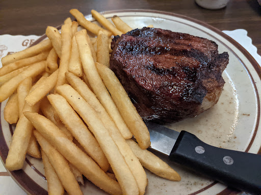Read moreWe came to try out this place which was recommended by some friends. We had a 8pm reservation and did NOT get seated until 30 minutes later. Once we were seated, the server brought out a Dish of pickles, butter with assorted crackers, some of the crackers were stale and old tasting. A while later out came our salads that looked like it came out of a store bought bagged salad mix. The ranch dressing was so watered down it poured out like water onto the salads. We were very disappointed by this. We ordered the pork chop with a baked potatoe and the 10oz ribeye steak with a baked potatoe, which I asked for it to be cooked well done, when the server brought it to me it was so Bloody and I could NOT eat it this way. My husband had to wait over 20 minutes before our sever Jake came to our table, he was engaged in a deep conversation with the couple behind us, that he never came back to check back on us, which really upset us both, especially since we came to Celebrate our Anniversary here. Jake finally walked close enough to us that my husband was able to inform him about my raw steak. 20 more minutes passed and Yet again Jake had to be hunted down to bring back my Steak, at this time when cut open again, it still was pink, I was so grossed out by this, that I never was able to eat the steak. Whenever we needed to talk to our Server he was off conversation with other customers. His poor attention to us while we were there dining made this experience so Aweful, that we would NOT Recommend this place to anyone of out friends. At the end of our dining Jake gave us the bill along with a box to pack up the raw steak, my husband had to ask him for our dessert which was included in our dinner order. Service was extremely poor, the atmosphere was ok, food was average, especially for the prices we paid. NEVER, EVER AGAIN. So un happy with the...