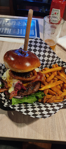 Read moreThis place is a gem. Nested in Sugarloaf, it is the only bar and eatery in this suburb of Big Bear. Kind of a secret place the locals like to keep for themselves, it serves excellent food in sizeable portions and $2.50 beer on tap. What you see in the picture is the aptly named "Triple Bypass Burger" which consists in a thick 1/3 lb. beef patty, lots of pastrami and bacon, a fried egg and several onion rings, everything piled on between a delicious bun freshly taken out of the owen. Normally, this monster of a burger would would feed 3 average sized Americans (or 15 less fortunate citizens of a socialist country). My initial plan was to cut it in two and take half of it home to enjoy the next day. But after taking a bite, I just couldn't stop eating until I finished it all, to my wife and son's amazement. I think this burger is the largest amount of food I have ever engorged in a single dinner table seating, in my entire 56 year life, so it's a kind of personal record. Your mileage may vary. Yeah, and about the Covid Karen people complaining and leaving one star reviews because in this place there are no mask required and the indoor dining room is defiantly open despite Gov. Gavin Gruesome's illegal diktat, here is my message to you: thank you for your bad reviews. Your whining and moaning about the bartender and servers who don't wear face diapers played a major part in my decision to give this place a try, so...