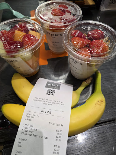Ā Ā Ā Read moreĀ Ā Ā Read moreBeware of the charges on the receipt, I couldn't understand the cashier, I'm assuming English is her second language, i ordered 4 danish and i also purchased a fruit cup; she mentioned something about "sometimes the system ..(mumbled)...ask your money back??" Anyway I looked at my receipt before I started to board my plane and noticed a SFO Employee Benefits (5%) of $1.15 charged added and the tip of over 13% $3.44 TIP? keep in mind, I clicked on their machine "NO TIP" but they still rung it up, is this what she was mumbling about under her breathe? What a RIP Off and an Illegal scheme against customers, Do Not go to Klein's Deli. My resolution to this problem, ask the cashier to repeat what you ordered and make sure you tell them "NO TIP is NOT included right? " To the Klein's management group, what you are doing is ILLEGAL, fix your systems and machines and figure out another way to charge your employee benefits, we don't need to know that charge, that's...