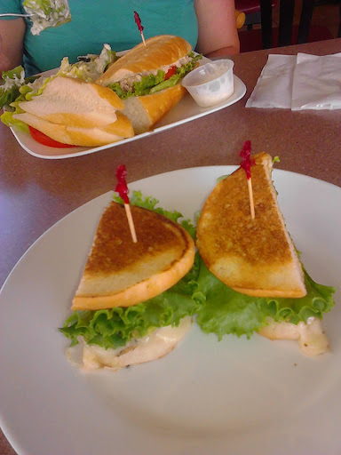 Anyway, on with the Review.... The employee (order taker) is awesome. As I walked through the door and was greeted with a friendly smile. Explanation of some of the specials and favorites where given. I selected the California Turkey. This has Turkey, Avocado, Romaine Lettuce, Roastrd Red Peppers, Cucumber and Mayo on specialty Walnut Bread. The shade of hue was a lite Purple /Brownish color of the Walnut Bread. The Bread was thick in appearance but with a fluffy soft chew to it. But be careful of the contents of the sandwhich wanting to slide out because the edges of where the crust meets the soft bread starts to crack and break away from it. The individual taste itself can be detected with each element of the contents as the Peppers where a little salted, a little Vinegary, the Avocado slices where a perfect.color and tasted that buttery consistency. While the Turkey, Romain Romain Lettuce and Mayo did their job to the perfect looking and might I add, tasty sandwhich. I recommend highly.