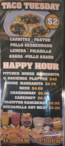 Always thought this place had mediocre food. Never good, just ok. But decided to give their Tuesday Taco special that they blatantly advertised in broad signage in front a try. His was the first Tuesday they had advertised this special. Once we sat down we were informed there were no taco specials and that there was a single chicken tostada option for $1.50. We ordered two and of course in typical fashion the food was super bland and lackluster. Then we tried to salvage the night and order a combo meal. Surprise surprise, burning bland and poor quality food. We have no problem spending good money for good food. We usually always eat authentic Mexican at El Molino. It’s definitely more pricey but they are ALWAYS consistent and use the highest quality ingredients. Don’t waste your money and devalue your desire to eat better food by dining at Hacienda. Cross the street and you’ll experience 100x more than you’ll expect. Don’t settle for less and demand better, especially for your money. Btw- anyone that says this place has good decent food doesn’t have a real sense of quality and probably doesn’t...