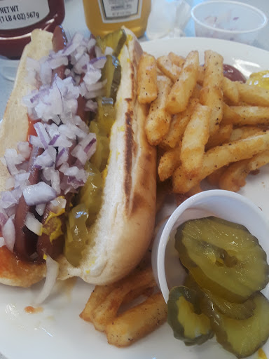 My food selection was on the lite side of an appetite which was the Hot Dog with a side of Pickles and Onions. It came with a side of the most glorious French Fries I have ever seen. The Bun was lightly golden toasted from a coat of Butter. Next was that All Beef Frank butterflied and Grilled to ensure proper flavors are grilled into it. I asked for a side of the condiments. They are willing to provide with any condiments that they have, from Avacodo to Tomato and anything that is a condiment in between.
