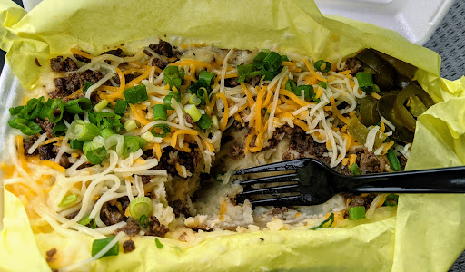 Read moreGood baked potatoes, very different in my opinion. I've been to many places around the US and this one is one of the different stands I've seen. The bacon one and the asada one is pretty good. Friendly service and pretty quick. The the days they are open are Monday to Friday; I believe from 10:30am or 11:30am to 9pm. The price for each...