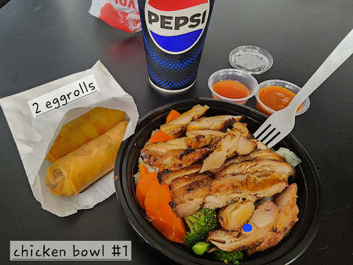 Luu's Chicken Bowl is a true hidden gem! Their #1 chicken bowl is my go-to. Their cooking technique of charbroiled chicken is a combination of a smoky flavor and a charred look packed with flavor. Chicken Bowl has an additional sauce bar where you can take additional teriyaki sauce, hot sauce, sweet and sour, fermented cabbage... They offer dine in or takeout. Sadly, they don't deliver, and they are not on Uber eats... You may call ahead and pick up. If you come here, YOU MUST! try their egg rolls. These are the way I remember eggrolls used to be when I was a child. If you don't eat meat, then you just have to miss skip this because the egg rolls come with veggies and chicken. Their Pepsi, I don't know if it is just me or what, but folks, this place knows what they are doing. The carbonation and Pepsi syrups are great. Usually other places their drinks taste flat, but here the Pepsi is good. Two things I want to mention It's a very clean environment, but is not your most esthetic place. Don't be harsh. Just focus on the food. Also, their sweet and sour sauce is made in-house. Okay, if you come here, do yourself a favor and try their eggrolls and the Pepsi! Crab ragoons...