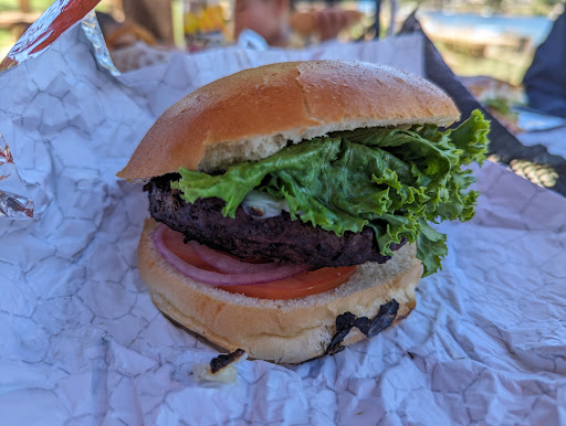 It's concessions stand type food but the hamburger is better than I imagined it would be! Onion rings are a must too. Spicy chicken burger was okay but I would pass on the black bean burger which was too salty.