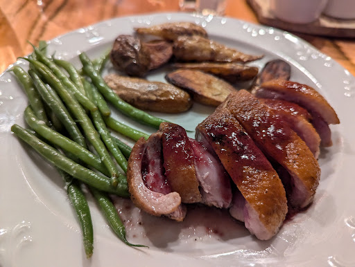 First time we came on a weeknight for a date night dinner. There were only a handful of tables occupied, unfortunately one of which was occupied by the waiter's boyfriend. Not only did our waiter not recall the special correctly, as we overheard her saying the correct one a few minutes later, but she would frequently go over and visit with her friend while we were waiting on beverage refills. We ordered duck and the lamb with pork gyoza as suggested by her as an appetizer. The Gyoza was quite good, decent portion. Duck was okay, a bit dry somehow, but decent flavor and texture. The lamb was hilariously over seasoned and sauced completely ruined the meat. Both of our entrees came out luke warm as well. It is sad when the side veg of asparagus seems to be the highlight of the meal. Well, we had heard mixed reviews on dinner so decided to try lunch and brunch. Equally if not more disappointing. Our waiter was friendly and quick, but immediately took a sour turn when we requested a modification to my lunch. After that, basically no service, no follow up, and apparently had no interest in collecting money as we had to track him down to settle our bill. Thankfully the busser kept an eye on us and our beverages. That waiter shouldn't be working the tables if he takes offense to a change to our order to the point that he ghosts us the rest of our meal. Chilaquiles were delicious, but no more so than our local mexican restaurants, yet more expensive with about 1/4-1/3 the portion size, what a joke. Lunch was a similar experience, same waiter who seems friendly at first but immediately turns cold on you with any sort of follow up request. If we come again, we'll have to request someone else. Thankfully the lunch food is quite good as we had heard. Calamari and chips are great, nice light breading, not greasy, good crunch and tender calamari. Burger was cooked perfectly with a bit of pink in the middle. Lunch is the way to go, but it is a shame that this was supposed to be our nice restaurant in Baywood and they can't execute good service or food the rest of the day. That on top of the news of them being shut down for an infestation doesn't surprise me since this place seems poorly managed. We'll probably give it another shot to support local, but its hard to consider after all of the negatives we've...