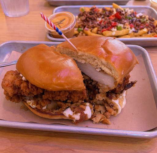I have eaten here on many occasions and with a good take away for most of the experiences. Tonight however, was the first time I had the fried chicken sandwich. You would think this would be there flagship claim to fame sandwich... It is a fried chicken breast with slaw, pickles pickled red onion & sauce on a brioche bun. It's a large sandwich! Unfortunately, the oil was too hot and the batter (crust) was over cooked and the meat under cooked. For chicken, that's a bad thing. I could not finish the second half of my sandwich due to it being pink in the middle.
