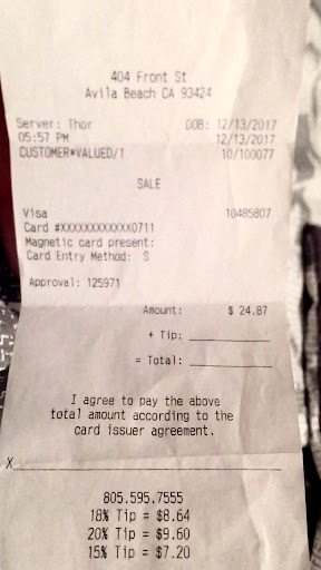 Read moreHad lunch at Mr. Ricks at Avila Beach. Location is incredible, patio is dog friendly. They have “dog rules” on every patio table, but they are not enforced. For example, the rules say barking or biting dogs will be asked to leave, but there were a couple small dogs, a Jack Russell in particular, that lunged, nipped, and barked at other dogs, and even escaped his leash and had to be chased down by the owner inside the restaurant - with no consequences. If you have rules, enforce them. Service was great, food was so so - about what you’d expect from a restaurant with such a prime location - they don’t have to make it in the quality or price of their food. I had the salmon Caesar salad - tasty but small portions and the croutons were more like small rocks than dried bread - why do restaurants do this to croutons? My spouse had dairy and gluten-free tacos; not bad but waaay too many onions. Salsa was tasty. So - great location, great service, not bad...