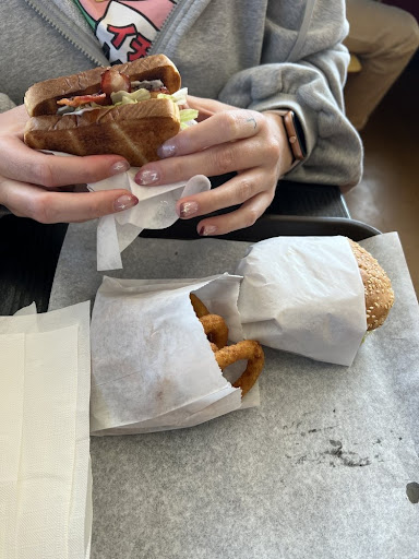 It took maybe a few minutes for our food be ready and it was all hot and very delicious. They did mess up Our onion rings as they thought we wanted those instead of your fries and not add it on but that's OK. They were still delicious.