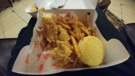 The food was awful, with a gluey-cement textured biscuit, sub-par popcorn shrimp (I've microwaved better shrimp), and fish fillets with the gritty texture and flat taste of a bunch of gutted fish sticks mushed together and deep fried. It tasted awful and made me sick for at least two days after (probably all the salt. If I'm going to eat that much salt, I want to enjoy myself).