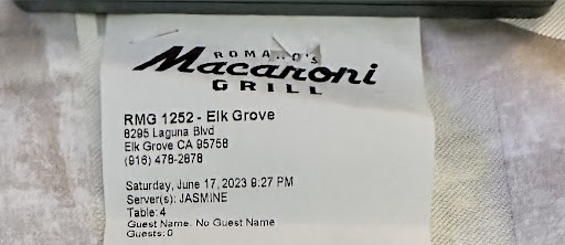 Our server at Macaroni Grill demonstrated commendable skills in attending to our dining needs. He was prompt in greeting us, seating us comfortably, and providing menus. He exuded a friendly and approachable demeanor, making us feel welcomed and valued as patrons. Throughout the meal, he displayed good knowledge of the menu, offering helpful recommendations and accommodating any special requests we had.