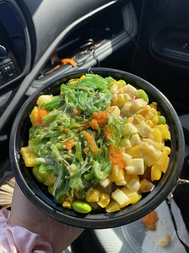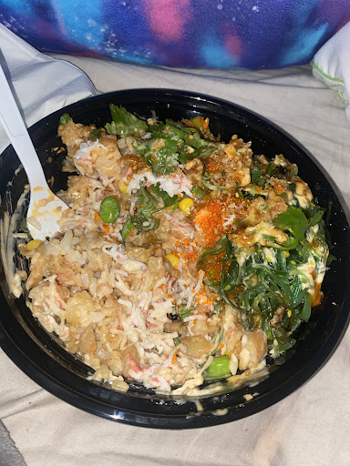 This is my poke bowl from Royal T Cafe in Manteca! 😊 I was in the area and I was craving for some poke hehe This was a cute little spot that also sells other food like sandwiches and breakfast items and drinks too! I liked how customers could customize their bowl with whatever ingredients they want on a laminated paper with a marker! It definitely is an eco friendly way to reduce waste! ♻️ I got the smallest sized bowl which came with three scoops of protein! I got the salmon, ahi tuna, and shrimp! I liked how the shrimp was kinda like ceviche style and not like other poke places I’ve gone to hehe it was good! The salmon was a nice, darker orange and tasted yummy! The ahi tuna was great too! The other toppings were great, like the seaweed salad, yum 😋 I also liked how this place does mango as well, so I included that in my bowl too! It was cool to try something sweet in my poke bowl! The nice ladies made my bowl pretty quick, and they had great customer service! 👑 It was a...