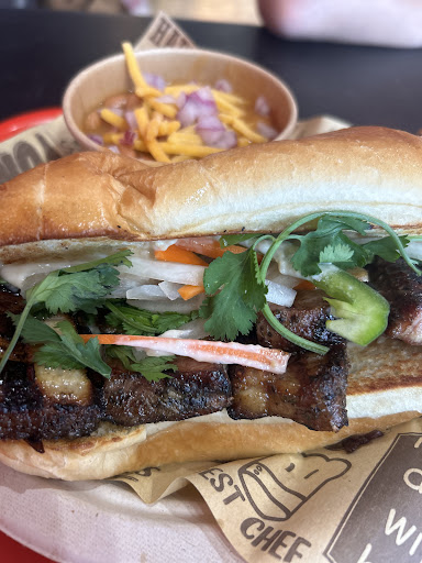 This sandwich is truly a masterpiece. The pork belly is perfectly caramelized, tender, and rich, melting in your mouth with every bite. It’s flawlessly paired with crunchy pickled vegetables, adding a refreshing tang, while the cilantro and jalapeño bring a burst of freshness and heat. And don’t even get me started on the garlic and soy aioli—it’s creamy, flavorful, and ties all the components together beautifully. Served on the freshest roll, perfectly crispy on the outside and soft on the inside, this banh mi hits all the right notes.