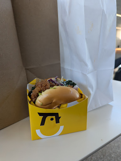 The chicken was crispy on the outside and juicy inside. I was surprised the chicken was not greasy and the bread was so soft like French bread. The first bite was amazing. The sandwich was huge so tried to cut it in half, So disappointing because the sandwich fell apart and it was just a big mess. Now I understand why they gave me a set of fork and knife. It was not a pretty site. Still get stars because customer service was ok and so was the food. The price was high but expected because itās the airport. Not quite a...