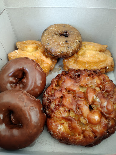 I was driving from San Diego to Az one rainy night. A little bit outside of San Diego my low tire pressure alert started flashing on my dash. I started to panic and took the very next exit so I could check my tire. It was dark out and most things around me looked closed. I pulled into a little strip mall that had lights on so that I could examine my tire. It was a total false alarm. My tire was fine. After my panic subsided I saw the welcoming glow coming from Steph's Donut Hole. It was after 8pm I figured there was no way they were open. The light must just be from employees cleaning up. Nope! They were still open! (Open late til 9pm daily!) My heart and stomach skipped a beat when I saw what this shop had to offer. ALL of my very favorite donuts lined up waiting for me. They do not do the trendy toppings of crazy candy and cookies and total sugar overload. No. They don't need to do that. Their donuts stand on their own, plain and simple. I got buttermilk bars, old fashioned rings, crullers, maple long johns, chocolate cake donuts, AND THE BEST APPLE FRITTER I'VE EVER HAD IN MY LIFE! I've tried fritters from all over the place in my search for the perfect apple fritter. My search is over. This is it. I live more than an hours drive from this shop and I've already been 3 times since I found it in December. These donuts are worth every bit of the drive. If you need some real donuts, get your butt to Alpine and...