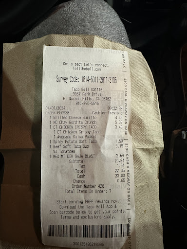 Read moreThe Taco Bell in el dorado hills apparent is owned by the same person as the stores in Folsom , when you look at your receipt it has a phone number on it ,it turns it’s the same number for all the store and it’s a fax number and there is no way to contact any of the store by phone or email, unfortunately I found this out after getting home with my food I purchased thru the drive through from a completely illerate person , who puts people in in retail food to take orders that can barely speak English?? Unfortunately it’s all to common these days …if this happens to you the best way do deal with it is to order the replacement food on DoorDash and after receiving the food claim it was made incorrectly and door will give a complete refund for the order and maybe the management of these taco bells just might think about providing away there customers can communicate problems …but who knows today maybe the owner is an illerate fool who can’t speak...
