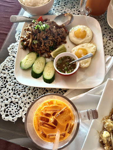 This place is full of the best Thai food in all of Sacramento. Not to mention all the amazing drinks such as the iced Thai coffee, which is BY FAR, HANDS DOWN, THE BEST THAI ICED COFFEE I'VE EVER HAD AND I'M INCREDIBLY PICKY WITH MY THAI ICED COFFEE! The proportions of food, as well as the drink sizes, are incredibly generous and exceptionally priced. When it comes to Thai food and Thai drinks, there is no other place in the Sacramento area or surrounding area that I would rather go to than here. In fact, all of their food, especially the Thai iced coffee, is so good that I would come in every other day-to order 4 large (when I say large, I mean FREAKING LARGE! Like big gulp size lol) Thai iced coffees, with no ice, and leave anywhere from a $10 to $20 tip each time just because this place is that bad @$$! The owners are also the best restaurant owners I've come across in my entire life. In conclusion, this place is awesome. The only thing negative that I have to say about this establishment is that sometimes there are up to 5 or 6 police officers dining here on their brakes. Now I know not everybody is like me and Doesn't like being around law enforcement for even 1 second, but the owners and the Thai iced coffee far outweigh having to be around officers of the law for a few minutes. No disrespect to you police officers at all, you have a job to do-and I understand that. I just dislike that when the details of your day's work have included me in the past lol but I'm I've gone legit now, I just still feel iffy...
