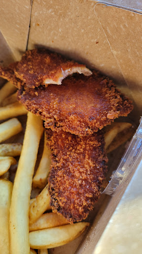 Read moreWe came about about an hour before cruise night started and ordered an artichoke and a kids chicken strip meal with bbq and ranch dressing. It took about 25 minutes to get our order, and we left. I would have gone back if we were still in the area. Unfortunately, for me, it was not an option. Upon opening the Chicken Strip kids' meal, the three tiny pieces of chicken were extremely flat, over fried, and tough to chew. An adult would not eat this, let alone a kid. Also, there is no ranch or bbq as requested. The chicken strips were also stuck together when fried, so it had a mushy undercooked spot. The picture is a torn piece up close so you can see how thin and overcooked the chicken was. The second picture is the part that was stuck together. Disclaimer: I can not vouch for anything else it was my first time under this...