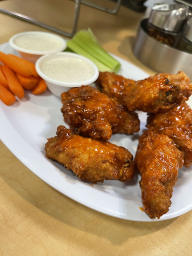 A few minutes later, our food arrived, and wow—our first bite was incredible! The pizza was perfectly thin with an amazing crunchy crust, a rich and flavorful tomato sauce, and fresh toppings. We had ordered it well done, and it was cooked to perfection. The hot wings were just as delicious—crispy and packed with flavor.