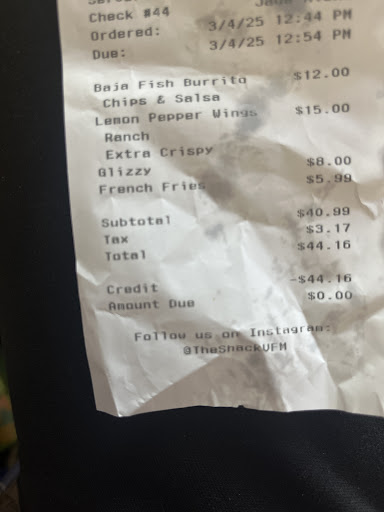 Ā Ā Ā Read moreIām so disappointed making this review. We get food from here like twice a month and have always been more than satisfied and happy with our food. This was our first time having such an unsatisfactory experience ordering to-go online. I ordered the Baja fish burrito with chips and salsa, as shown in the receipt attached, but did not receive any chips. The burrito itself was so sad LOOOLLLL, it was less than half the size it usually is (Iāve ordered this burrito many times before), and they quite literally stuffed the burrito with the tortilla itself to make it seem as if it had a lot of filling. Iāve provided a picture belowāthe entirety of the burrito looked like that. Like yall, thatās such a sad looking burrito⦠come on man. Other than that, the hot dog was very good and I love their wings! But the experience we had today just negated everything. Like bro, just look at the burrito⦠what...