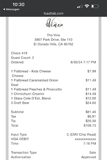 Read moreCame here with my family (wife and 2 kids). Had our dinner and left a good tip (picture attached of my receipt). A couple days later we get a call, they left a voicemail calling us names and that we came in with 2 kids and we need to leave more than a 20% tip because we have kids. They used a derogatory name too that I wonât write out. I have never experienced anything like this ever. I am assuming they had the wrong person because you can clearly see I left a $20 tip on an $80 bill. My kids were not misbehaving or making a mess. But even if they got the wrong person, the fact that they call customers afterwards to complain about a tip is mind blowing. I have a saved copy of the voicemail, tried to show the owner and they disregarded us. I wonât be returning and I advise those with kids to stay away...
