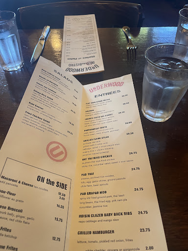 Read moreMy husband, son and I went to dinner on Sunday at Underwoods. We have been here numerous times over the years and love the cozy bistro atmosphere and delicious food. This time however, we were very disappointed. My son ordered the Thai Fried Chicken. I specifically asked how many pieces and which pieces would be included. Our server said it was "Chef's choice," but when I followed up to ask if there would be a piece of white meat, a breast, I was told yes. What arrived was two wings and a small thigh, along with a half cup of rice and a small cucumber salad. Two wings!!!? Really? This is not enough food for a grown man and quite a mark-up for $24.75. The Chef clearly chose to disappoint us. Luckily (or so we thought), my son also ordered Macaroni and Cheese. Their version of Mac and Cheese included blue cheese, which completely overwhelmed the other cheeses and gave the dish a funky taste. We did take it home in a to go box, but threw it in the garbage right away. The menu should have listed blue cheese in the description as it can be an acquired taste. We would not have ordered it had we known. We had to stop for fast food on the way home for my son!