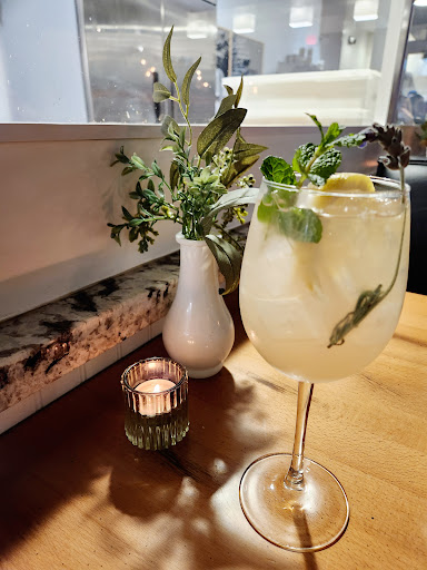 Came in on New Year’s Eve with no reservation, and was able to get seating at the bar-top with Dominic as our bartender. Very knowledgeable and nice person. They gave out new year’s hats and horns which was fun! We were told homemade focaccia bread was on the way once we had placed our drink order. 15 minutes later drinks come out, but for some reason none of them were made at the bar we were located at, but seemed to have been made next door at the mimosa house.