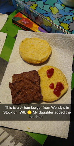 Read moreWe ordered a small chocolate frosty(free with promo), a 6 piece regular flavor chicken nuggets, a Junior cheeseburger, and assumed for 3 ketchups from Wendy’s drive thru at 4431 E. Waterloo Rd, Stockton, Ca 95215. We paid $6.48 and 0.50 tax on 7/22/22 at 12:44pm. Store 8602.