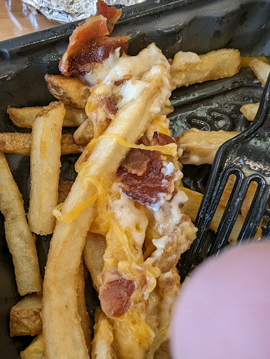 Read moreAlthough people were dining in, none of the doors opened from the outside. One was boarded up and the other appeared to be locked (it was around 7pm, so not that late. If they’re going to stop serving in the dining room at a particular time a sign on the door would be appreciated). So, we went through the drive-thru. Not great. Other staff kept asking the guy serving us questions, and his answers came through the speaker, so it was difficult to understand when he was talking to us and when he was talking to staff. Not surprisingly he got confused and had to redo part of our order, which took awhile. Then we had a long wait at the window while they gave us stuff we didn’t order, asked us for more money after we’d already paid and we had to ask for the rest of our order when they told us to drive away. She didn’t even look at us as she handed the last item to us as she was talking to other staff, and by the time we called out “thanks” she’d disappeared completely. The fries tasted amazing though, so at least...