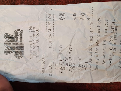 Read moreI've been going here for years, and I finally decided to eat in the dining room. We sat down at the table and started eating. I was about done with my hot dog, and along comes a roach over my leg and straight for the food. I asked for my food to go but I couldn't stomach it. Makes me think about what could be in the kitchen. Employees didn't seem to be surprised, and were not apologetic at all. I know it's not their fault, but I felt like I shouldn't have even said anything. What's the point? I am so disappointed, and will miss eating here in Manteca. Oh yeah, and the A/C...