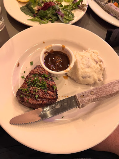 The steak salad was good: fresh produce and appeal although the meat was tough to cut, like they did not cut it against the grain when they served it upon the salad. The italian sausage pizza was ok, but not tasty enough to eat more than a piece or two (and from what I see today, it is not very appetizing when you save it)